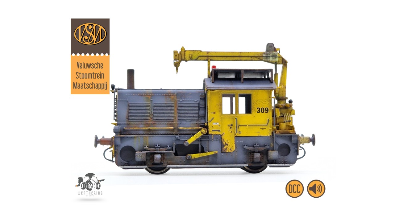 In een zeer beperkte oplage wordt dit model door onze Weathering Studio onderhanden genomen, exact zoals de VSM 309 er vandaag de dag bij staat en nog altijd rijvaardig haar werkzaamheden verricht op het terrein van de Veluwsche Stoomtrein Maatschappij.
