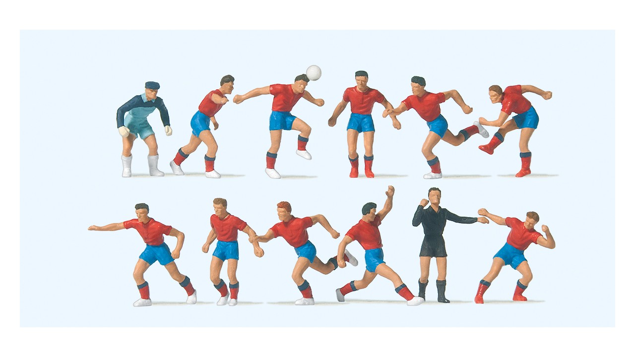 Voetbalteam rood shirt - lichtblauwe broek - scheidsrec
