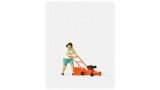 Vrouw met grasmaaier